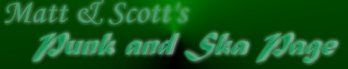 This is Scott's and Matt's Punk/Ska Web Page. We have cool links, stuff about us and our pathetic lives, our favorite punk/ska bands, and other stuff. If you wanna send me (Matt) e-mail about our page, cool bands, or anything else, my e-mail address is [email protected] I also use mIRC. I'm usually on irc.qdeck.com with the nickname 'PuNkS�RuLE' or 'Access�Denied�'. Well, enjoy the page. Oh, and by the way. Some of the really cool graphics on this page were done by Shadowdemon (Gates) who's really cool and will make you graphics, too. His page is www.travel-net.com/~perry and his e-mail address is [email protected] -- He's really cool.